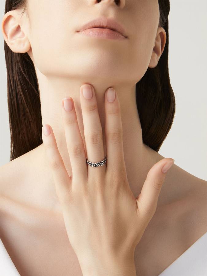 Anello a fascetta composto da piccoli fiorellini in linea. MISURA 16