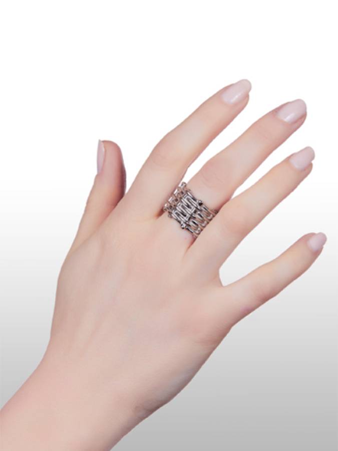 Questo anello della linea Paris è di misura 16 ma si può avere anche nelle misure 12, 14, 18. L´altezza dell´anello, cm 1,4 comporta la scelta di una misura in più.