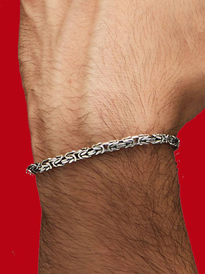 Bracciale decisamente maschile in maglia bizantina quadrata, cm 0.3 di lato. Lunghezza cm.21