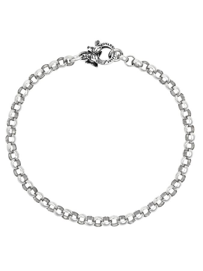 E´un bracciale base in argento, in fine catena rolò, ed è il punto di partenza ideale per creare un pezzo unico con i tuoi charms preferiti. La chiusura è impreziosita da un delicato decoro a forma di farfalla. Lunghezza 21 cm.