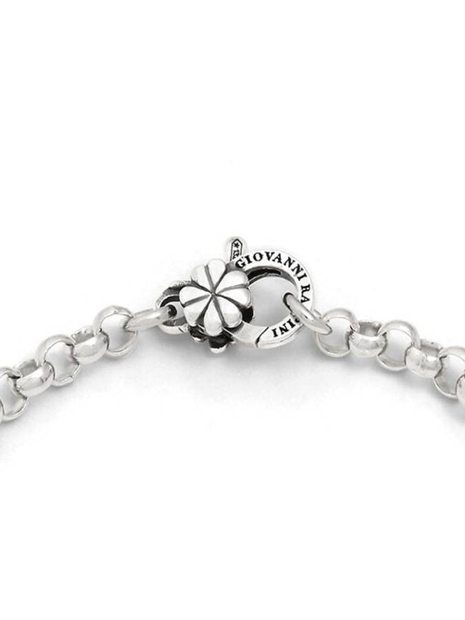 Questo è un bracciale base realizzato con una fine catena rolò, per creare un pezzo unico con i tuoi charms preferiti. La chiusura è impreziosita da un delicato decoro a forma di quadrifoglio, fuso a cera persa. Lunghezza cm. 21