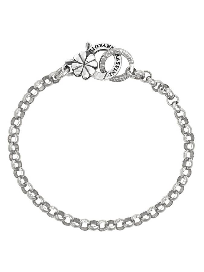Ecco un bracciale pensato per accogliere i tuoi charms realizzato in catena rolò d’argento, che si distingue per la chiusura con brisé decorato con un quadrifoglio, fuso a cera persa. Lunghezza cm. 20