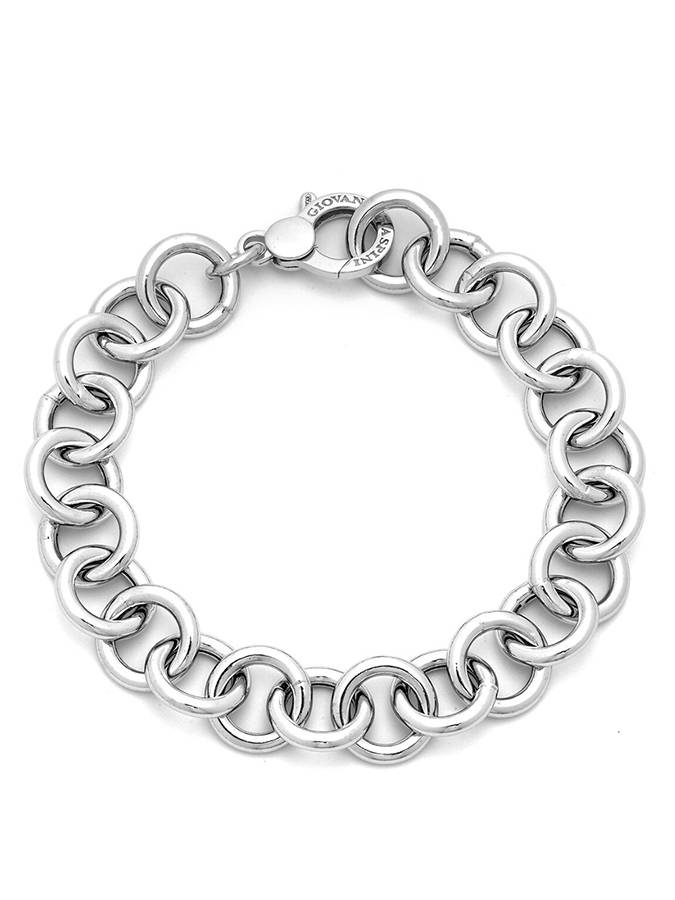 EŽ un bracciale classico a maglia tonda grande e consistente, bello da solo o arricchito con charms. Lunghezza cm 21, regolabile.