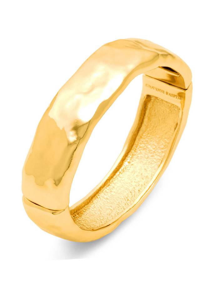 Il bracciale, dalla struttura rigida, è caratterizzato da un’apertura a molla per una vestibilità comoda e sicura. Realizzato in bronzo dorato con effetto spatolato, cattura lo sguardo con la sua texture unica. Racchiude tutto il fascino e la tradizione della fusione a cera persa.