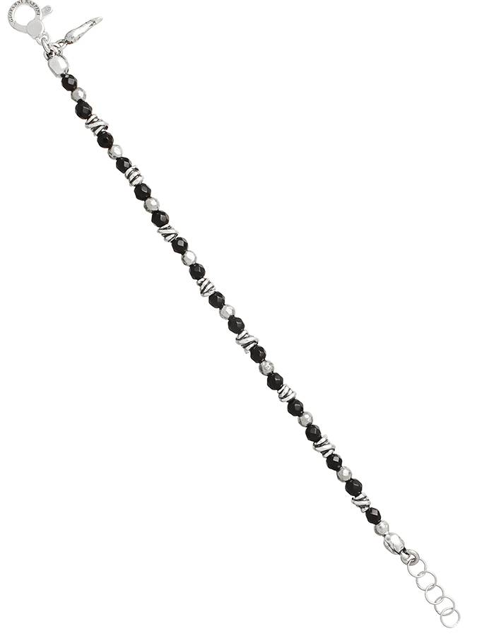 Sferette a forma di nodino di filo, sferette in argento martellato e sferette di onice nero formano questo bracciale di 19 cm. Si può avere anche la misura 21 da uomo.