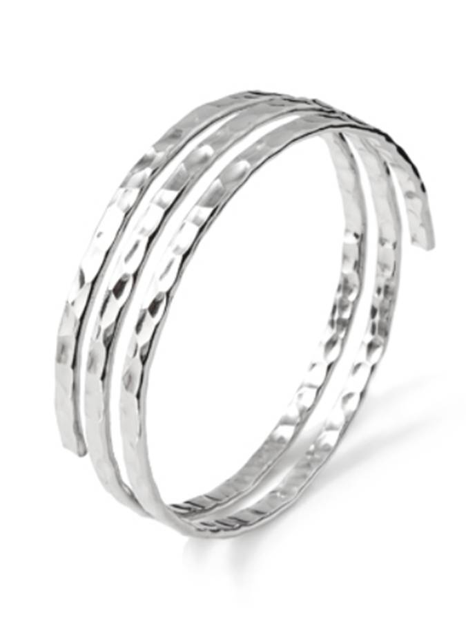 E´ un simpatico bracciale formato da una spirale a nastro di 5 mm martellato. Misura interna 65 mm.