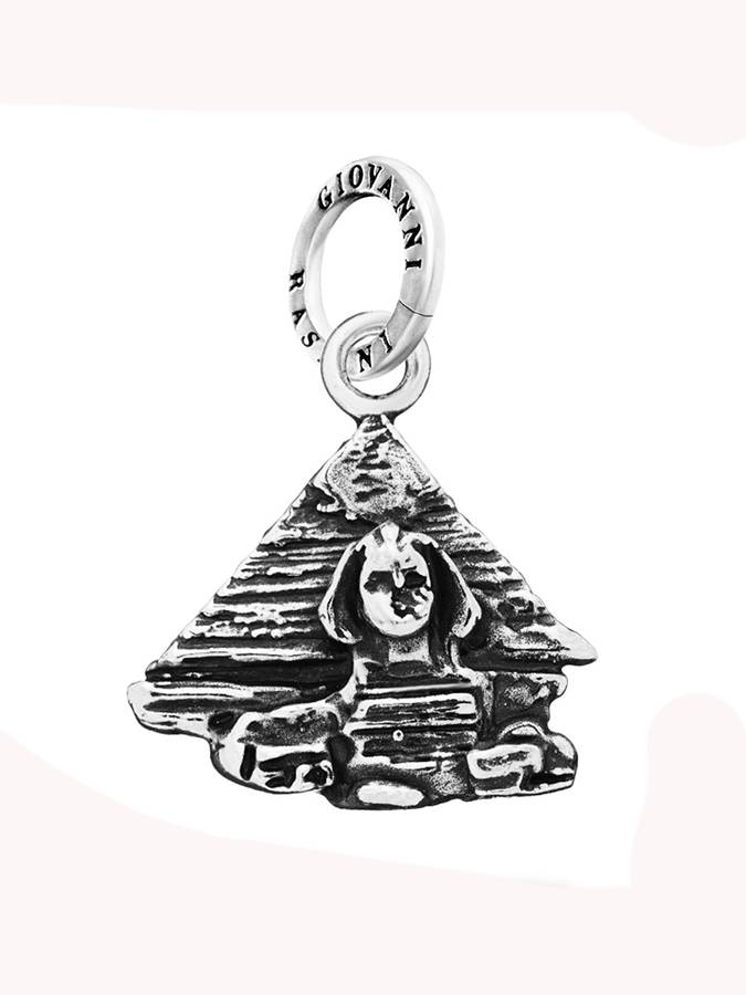 Egitto: la Sfinge è un simbolo iconico di questa civiltà. Il charm misura circa 2,4 cm in altezza senza la maglia rotonda logata di aggancio.