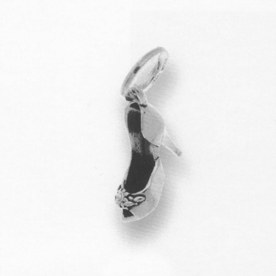 Pendente alto cm 1.5 esclusa la campanella rotonda con logo di cm 0.9. Ha la forma di una scarpetta scollata.
