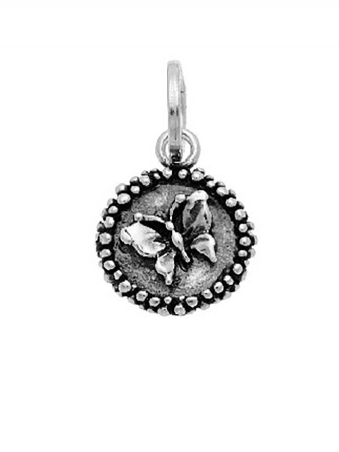 E´ una medaglietta di 1.4 cm di diametro con contorno  a motivo Perlage che raffigura una piccola farfalla.