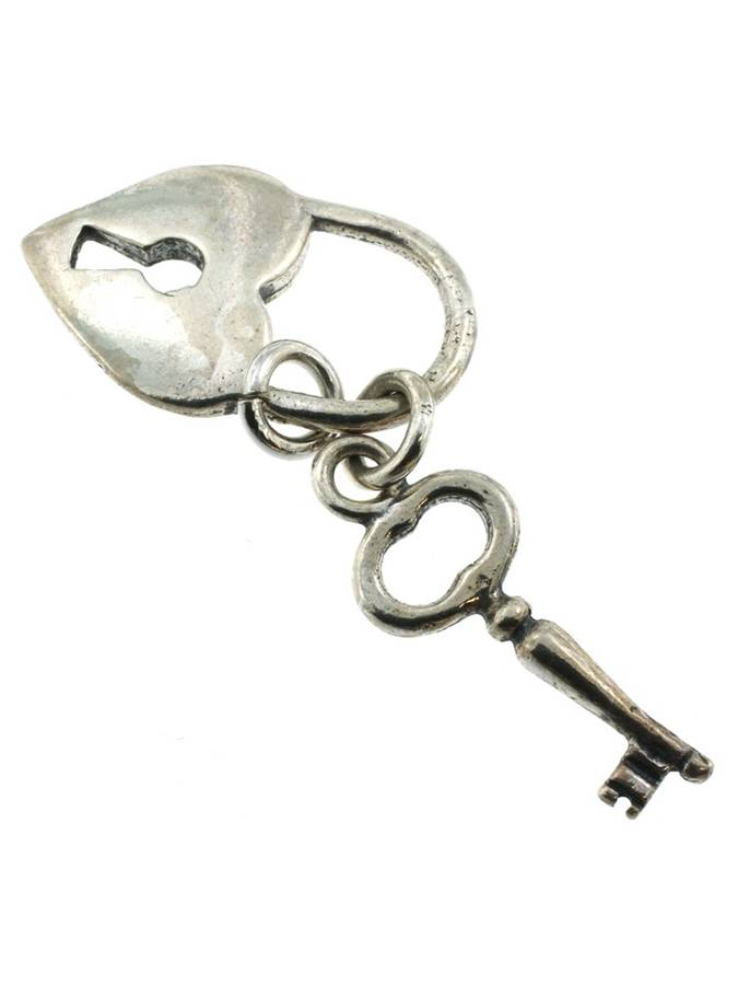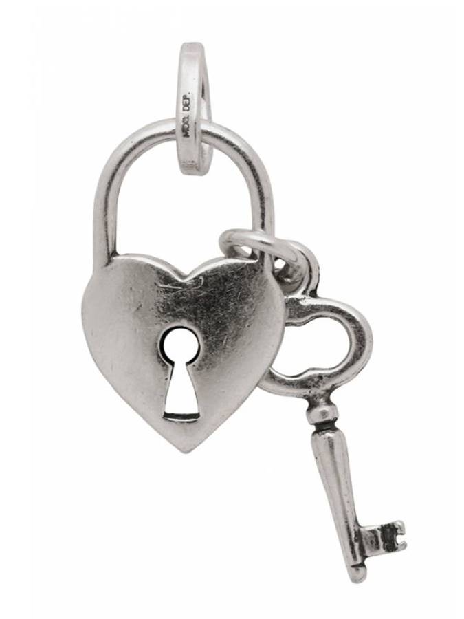Pendente composto da due charms, un lucchetto a forma di cuore e una bella chiave. Misura nell´insieme circa 2 cm senza la maglia rotonda e logata di aggancio.