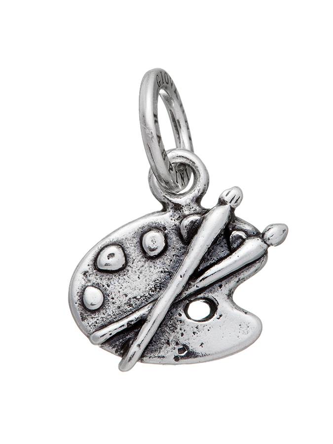 Charm a forma di tavolozza per pittore con pennelli. lumgo cm 1.8 esclusa la maglia di aggancio rotonda e logata.