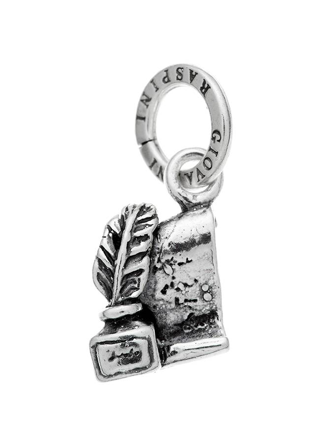 E´ un charm simpatico e molto ben fatto e rappresenta una penna con il calamaio e una lettera in pergamena. E´ lungo cm 2 esclusa la maglia di aggancio rotonda e logata.