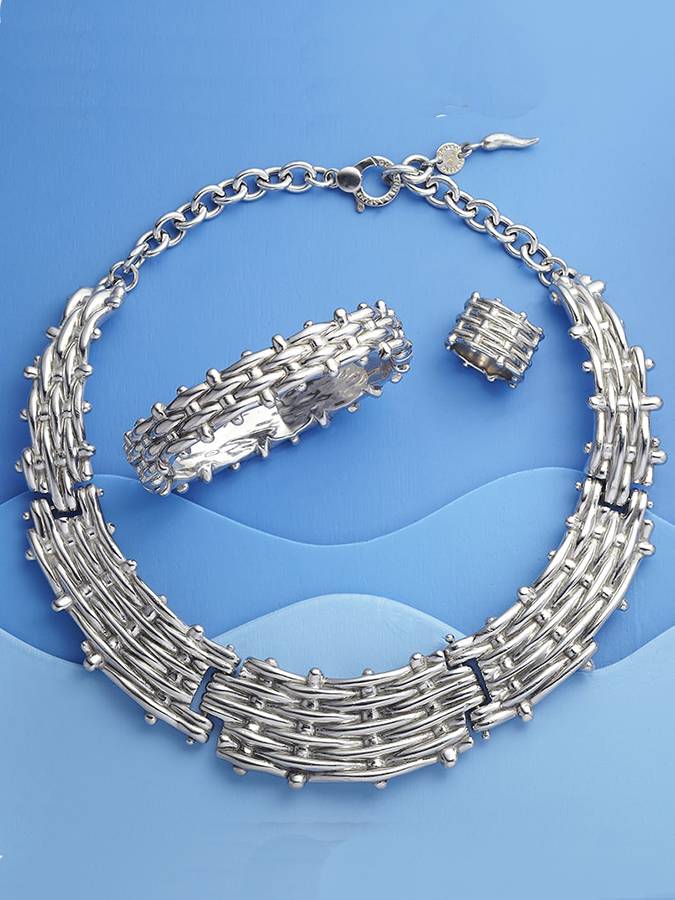 Collana luminosa della Collezione Paris - Intrecci d´argento leggeri come le nuvole. Un gioiello-scultura al confine tra figurativo e astratto. Gioia, luce ed eleganza contemporanea.