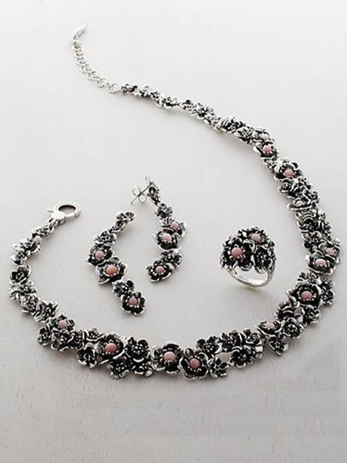 Collezione Wild Rose - La classe delicata dell´opale rosa e l´emozione di una rosa in argento. Avere sulla pelle l´eterno profumo della bellezza. Lunghezza 6,5 cm.