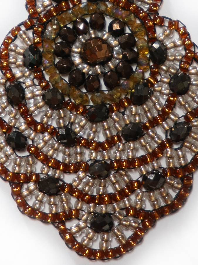 Orecchini con cristalli Swarovski e conterie giapponesi sui toni dell´ambra,e dell´argento., sono lunghi 8.4 cm. L´attacco con perno e clip è in argento 925.