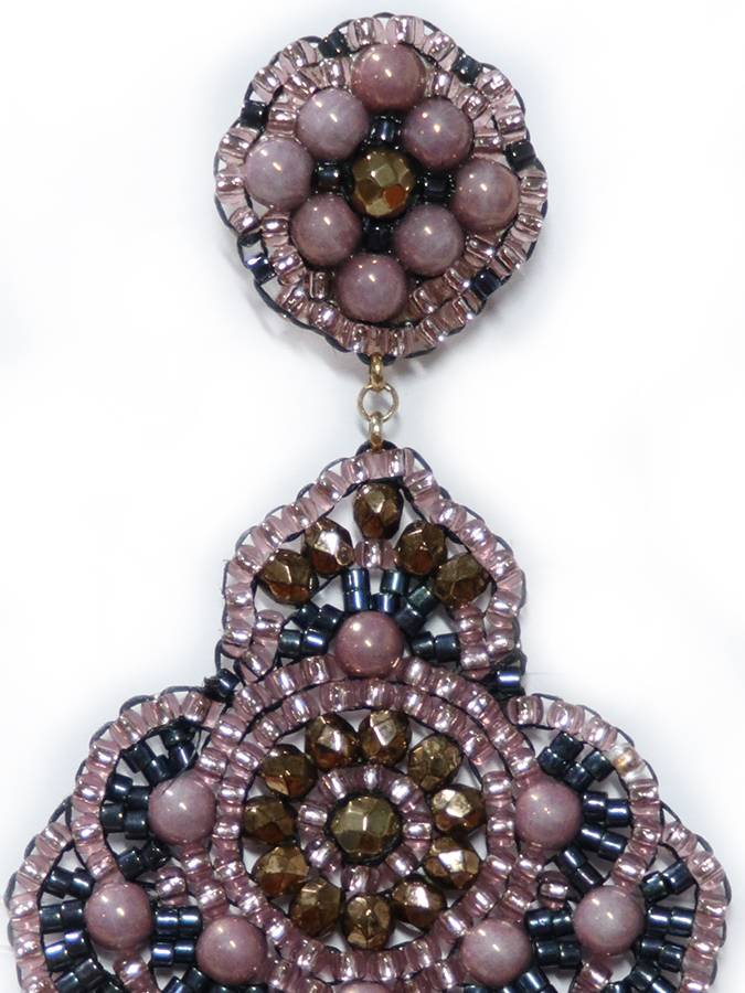 Sono molto particolari questi orecchini con cristalli Swarovski, perline giapponesi e perle rosa antico. L´attacco è in argento 925 con perno e clip esono lunghi 8 cm.