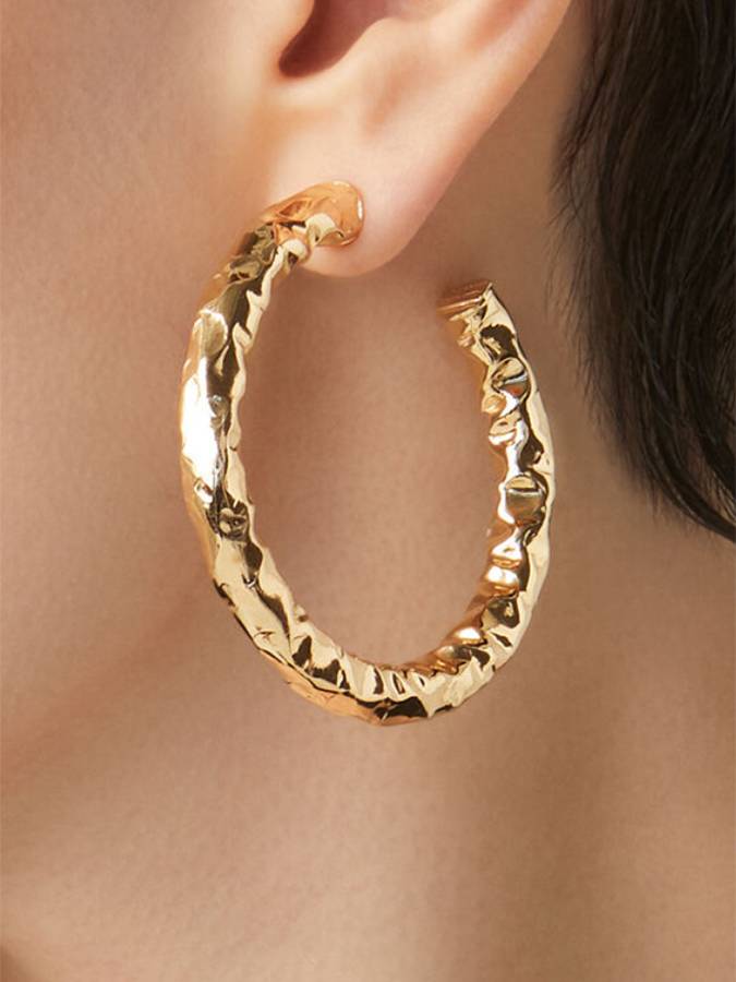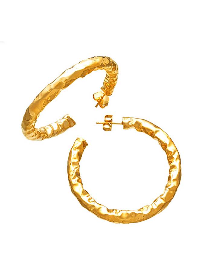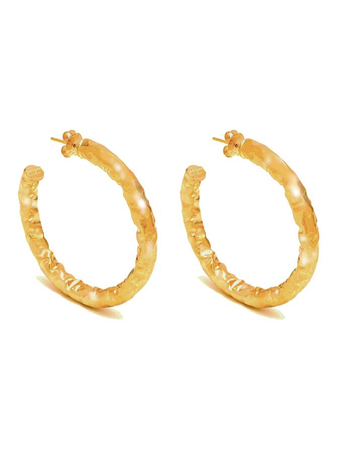 Elegantissimi, gli orecchini Stone Grandi dorati riflettono la luce naturale illuminando il volto. Fatti completamente a mano, sono realizzati a partire da una lastra d´argento martellata a mano e successivamente piegata. LŽultima lavorazione è la galvanica in oro. Hanno un diametro di 5 cm.