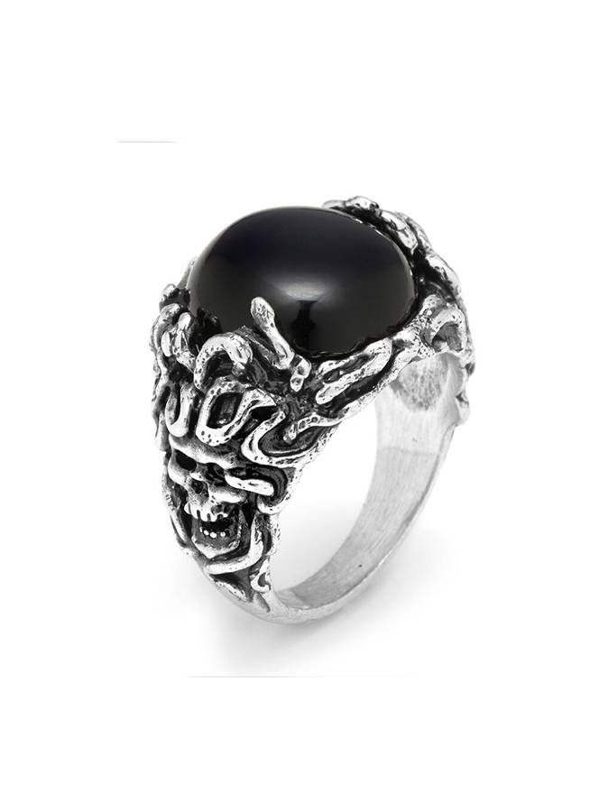 Luminoso gioiello in argento 925 realizzato a mano attraverso l´antica tecnica della fusione a cera persa con cabochon centrale in onice nera. Disponibile subito las misura 24, per le altre dalla 20 alla 27 coccorrono 4/5 giorni per la consegna.