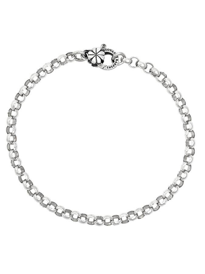 Questo è un bracciale base realizzato con una fine catena rolò, per creare un pezzo unico con i tuoi charms preferiti. La chiusura è impreziosita da un delicato decoro a forma di quadrifoglio, fuso a cera persa. Lunghezza cm. 21