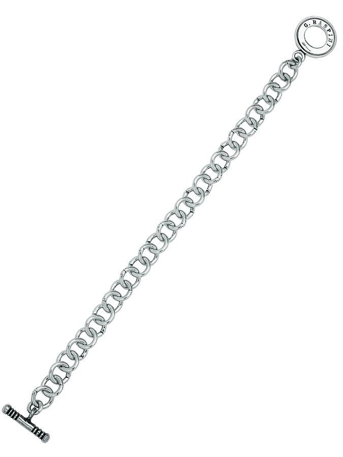 Bracciale a catena di maglie tonde, consistente, con chiusura a T-Bar che si può indossare così com´è oppure fare da base per i charms. Lunghezza cm.21. Gioiello fuori produzione.