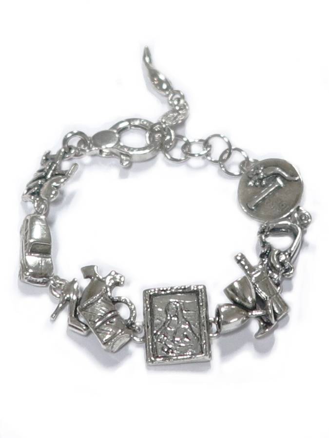 Bracciale con oggetti-icona italiani, lungo cm. 18 con 3 cm di catenina di allungo.