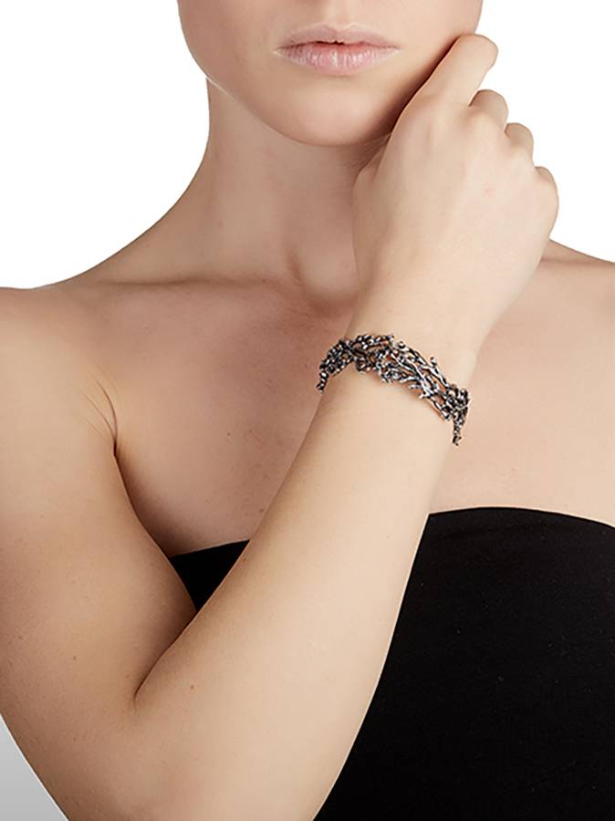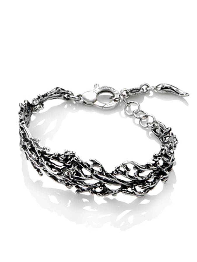 E´ un bel bracciale che ricama sul polso tanti rametti di corallo. E´ un bracciale snodato di 19 cm.
