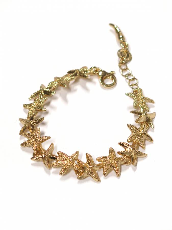 E´ un delizioso bracciale fatto di piccole stele marine, finemente lavorate in tutti i dettagli. Raffinato e molto decorativo, è in argento 925 galvanizzato in oro giallo ad alto spessore,