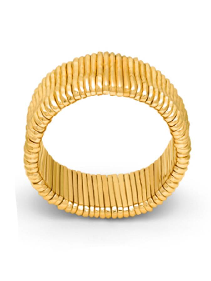 Luminosissimo, originale ed elegante, questo bracciale può essere indossato con qualsiasi outfit. La presenza di molle interne nascoste garantisce una ottima vestibilità. E´ un gioiello fatto a mano, espressione di preziosa arte orafa e di maestria artigianale. Altezza della fascia com. 2,9