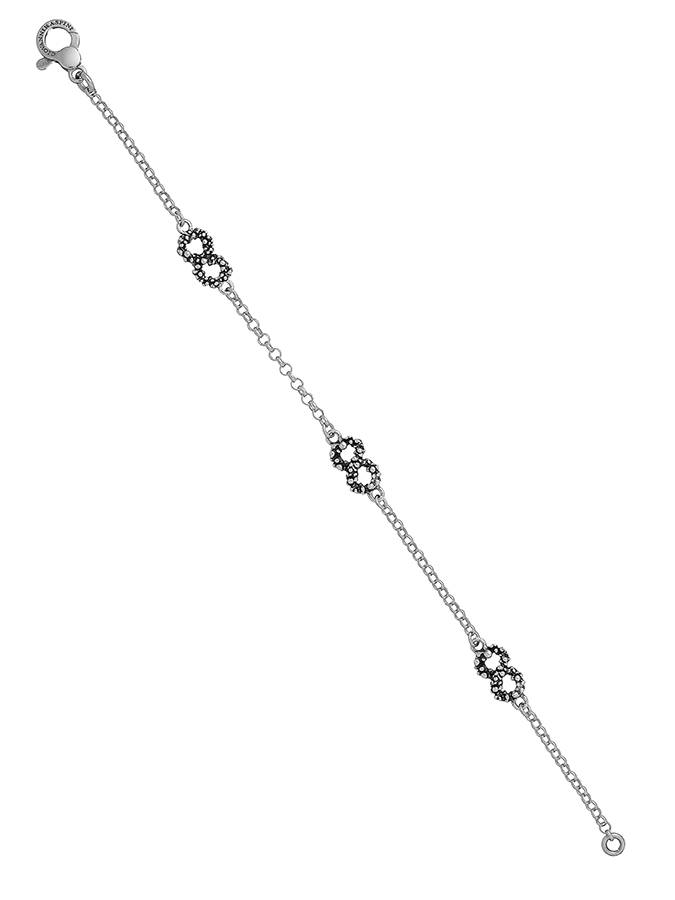 E´ un bracciale sottile, da portare da solo o con altri. Su una catenina rolò sono saldati tre simboli dell´infinito della linea Perlage. Molto carino e bene augurante. Lunghezza cm.19