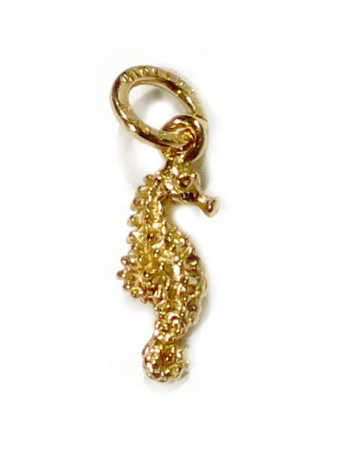 Piccolo charm a forma di cavalluccio marino, lungo cm.2.4 più la maglia di attacco rotonda con logo.