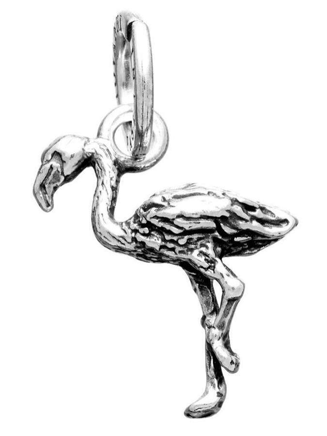 Charm piccolino a forma di fenicottero, classico pendente di Raspini che ama ricordare nei suoi gioielli gli animali esotici di tante specie. Lungo 1.8 cm.