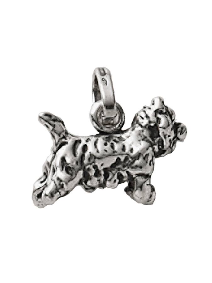 Ecco un charm che rappresenta il cane Westy, cane che assomiglia ad una nuvola bianca piena di energia. Viene fornito con la nuova maglia rotonda logata.