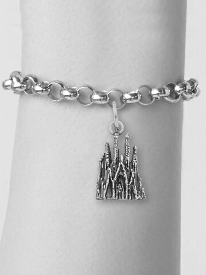 Ecco la Sagrada Familia rappresentata in un char di Giovanni Raspini nella linea Around the world. EŽ lungo cm 2.8 senza la maglia rotonda di aggancio logata.