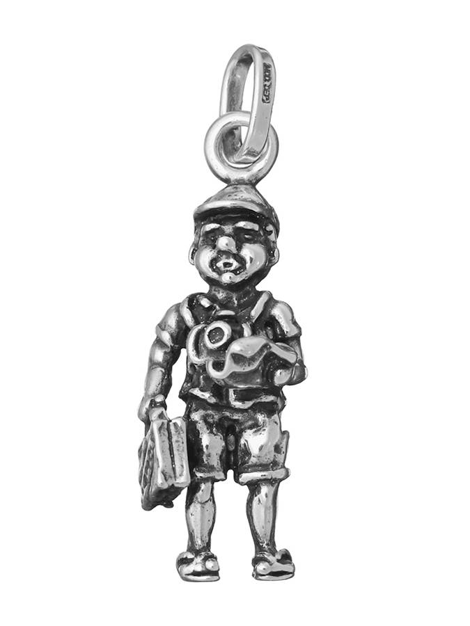 Ecco un turista che, armato di macchina fotografica, guida turistica e valigia, sta girando il mondo. E´ lungo circa 3.5 cm senza la nuova maglia logata rotonda di aggancio che sostituisce la vecchia maglina ovale.