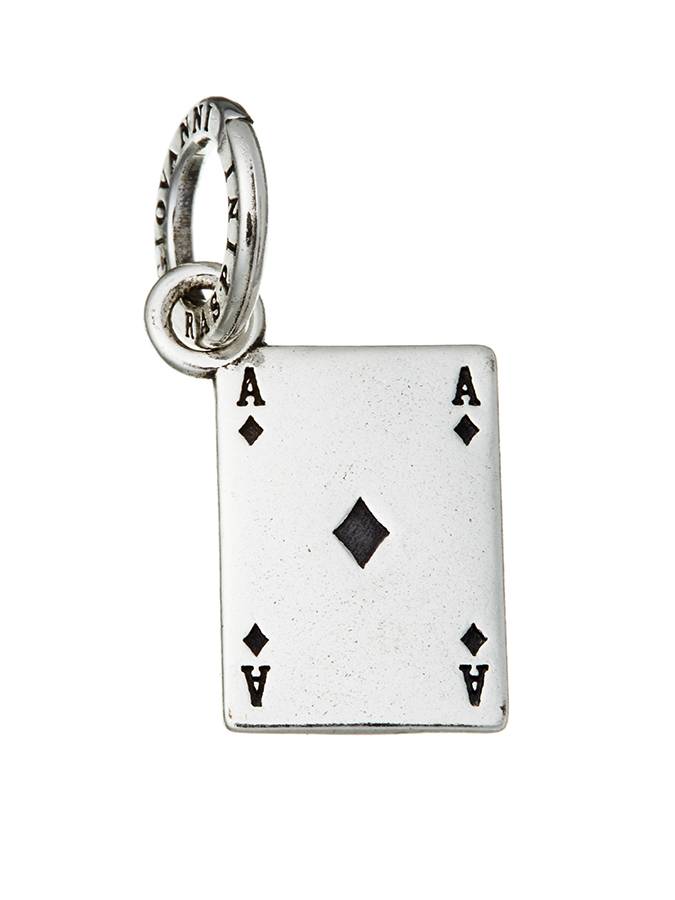 Charm carta da gioco che rappresenta lŽasso di Denari. La carta netta da maglie misra cm. 1.5x1