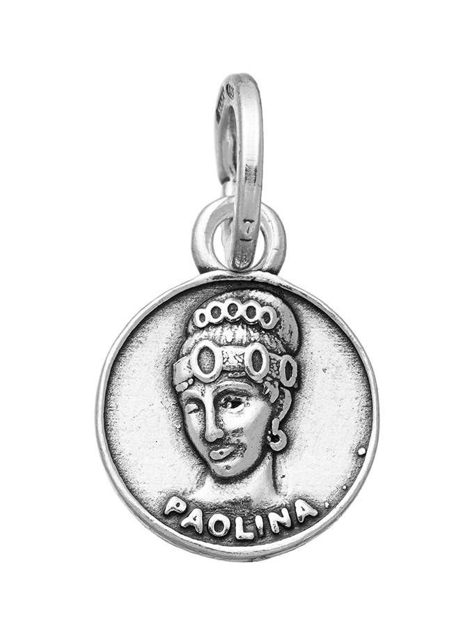 E´ un charm che appartiene alla serie di medagliette che raffigurano il volto di donne famose. Misurano cm 1.5 di diametro. Sul davanti c´è il volto di Paolina Bonaparte, sorella di Napoleone, sul dietro vediamo lŽimmagine di lei che posò a seno scoperto per il Canova, per un´opera ispirata a Venere.
