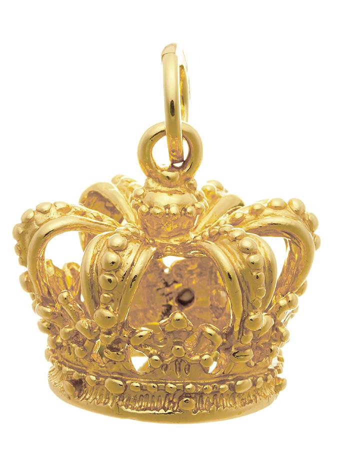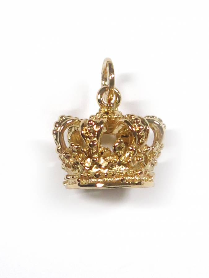 E´ un charm a forma di corona, lavorato con tanti dettagli. E´ alto 2.2 cm più la maglia rotonda con logo di 0.9 cm. Romantico e fiabersco questo charm può essere indossato da solo con una catena e come pendente in un bracciale.
