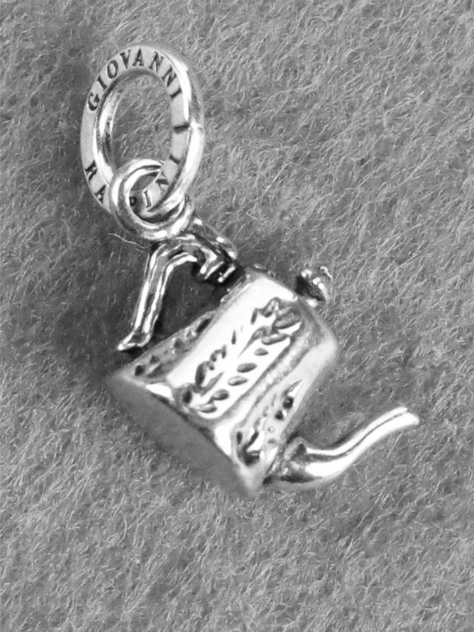 Piccola simpatica teiera raffigurata in questo charm. Misura in lunghezza 2.1 cm. senza la maglia rotonda e logata di aggancio.