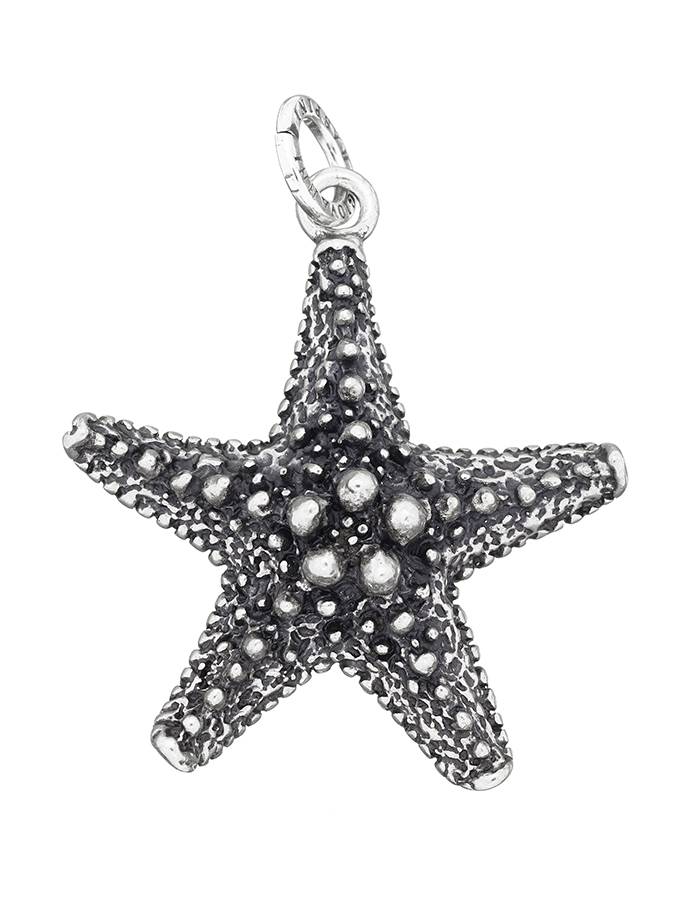 Bellissimo charm a forma di stella marina, curatissimo nei particolari. Lunghezza cm. 4.3 senza la maglia logata di aggancio.