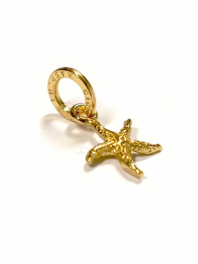 Charm a forma di piccola stella marina, lunga cm.1.9 più la maglia rotonda con logo di aggancio di cm. 0.9