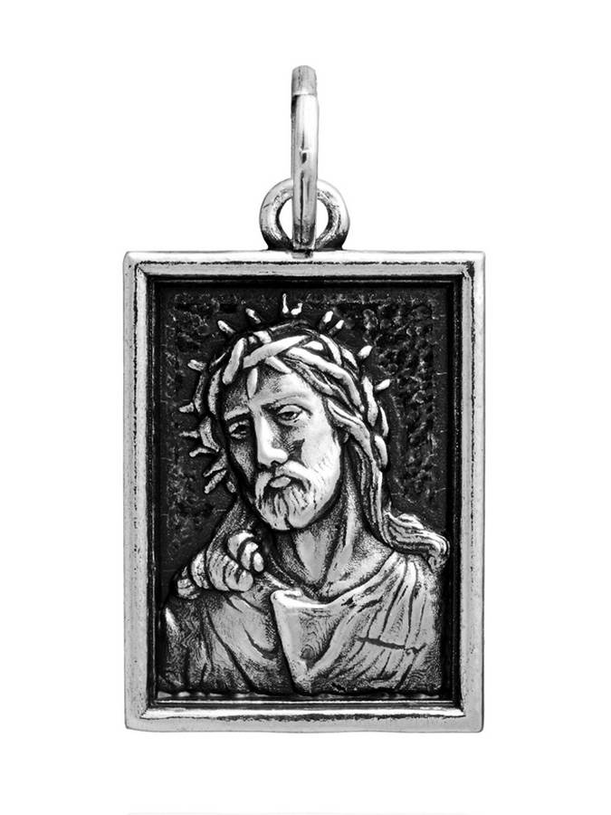 Charm a soggetto sacro lungo cm 2 esclusa la maglia di aggancio rotonda e logata.