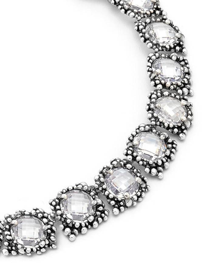 E´ una collana fantastica in cui pietre luminosissime sfaccettate sono incastonate in un lavorato decoro perlage.  E´ una sferzata di luce intorno al viso, davvero bellissima. unghezza cm. 43