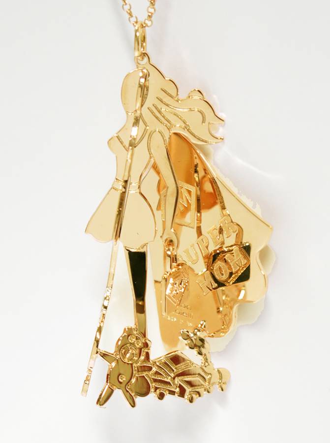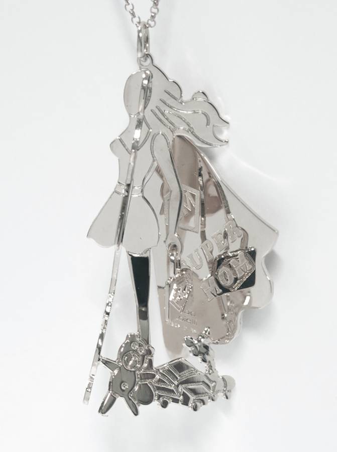 un omaggio alla Super mamma che fa mille cose, che è sempre presente, che organizza tutto, sempre allegra e sorridente. Questo è un pendente spiritoso come tutti i gioielli di Beba, e rappresenta l´orgoglio di una mamma di oggi, attenta e amorosa.
