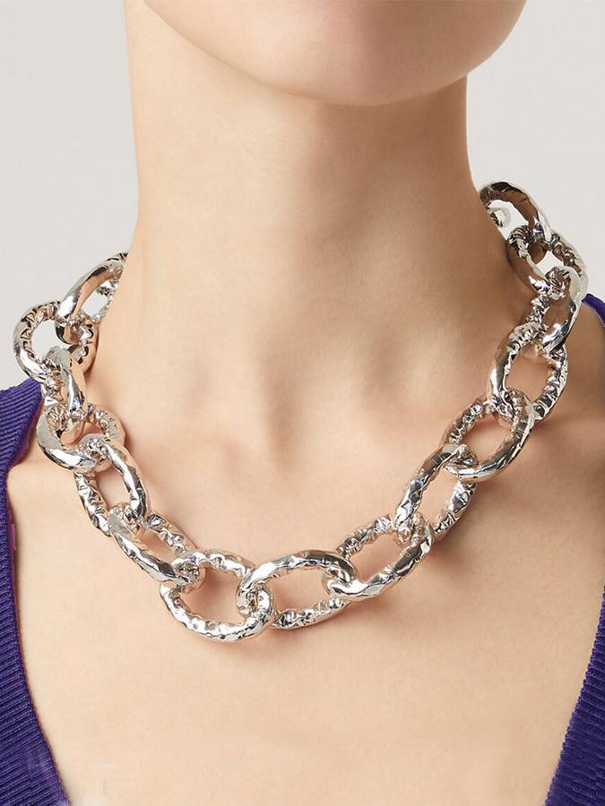 Questa meravigliosa collana viene realizzata da lastra dŽargento martellata a mano e piegata. Fatta a mano, misura 50 può essere indossata anche con aggiunta della collana Stone di 60 cm, ottenendo una catena di 110 cm. Meravigliosa. Bellissime anche la collana di 60cm. e questa di 50 cm indossate una dentro l´altra.
