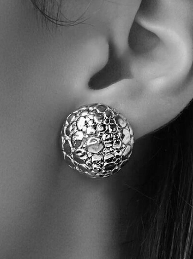 Collezione Crocodile - Texture luminose che si rincorrono tra i riflessi d´argento. Tutta l´emozione del gioiello animalier trasformata in una creazione contemporanea. Per raccontare la bellezza eterna della natura selvaggia. Diametro del bottone cm. 2