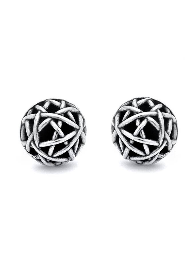Questi orecchini in argento sono ispirati ai volumi della sfera abbellita dal tema intrecci. Regalano un indosso leggero e prezioso e vengono realizzati completamente a mano. Misurano cm. 1.2 di diametro.