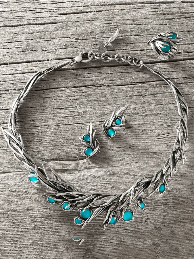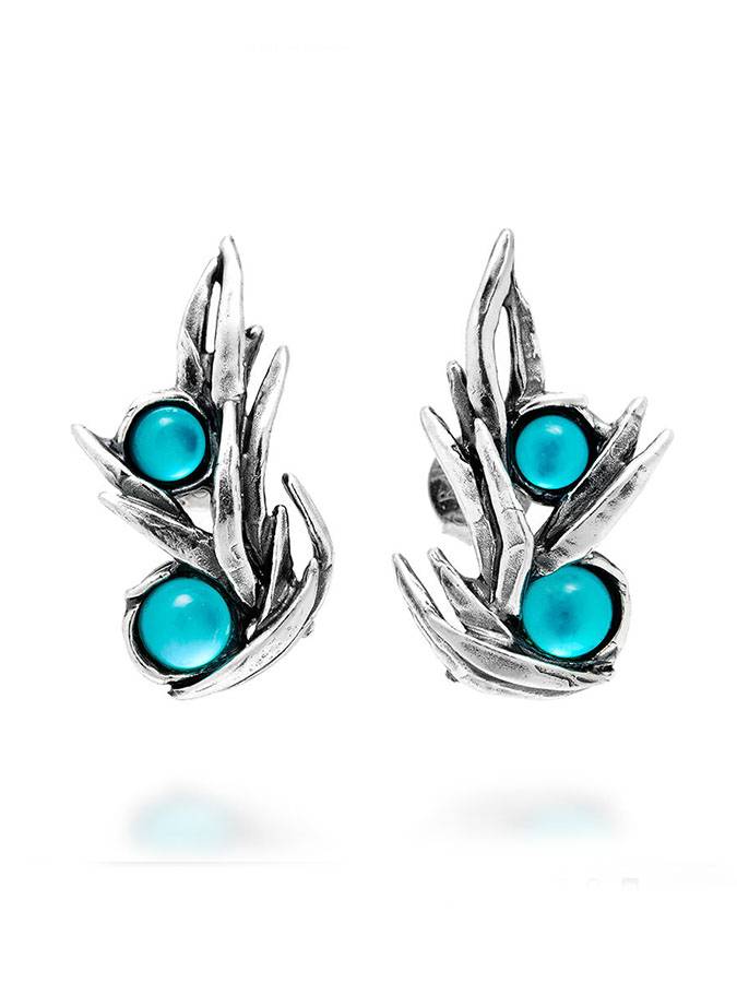 Gli orecchini Posidonia uniscono elementi naturalistici di natura marina con una resa plastica dell´argento fuso assolutamente unica. Filamenti in argento incastonano madreperle naturali doppiate con quarzo, turchesi come l´acqua limpida e profonda.