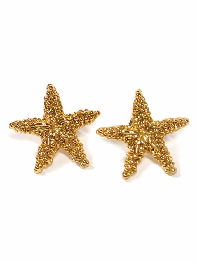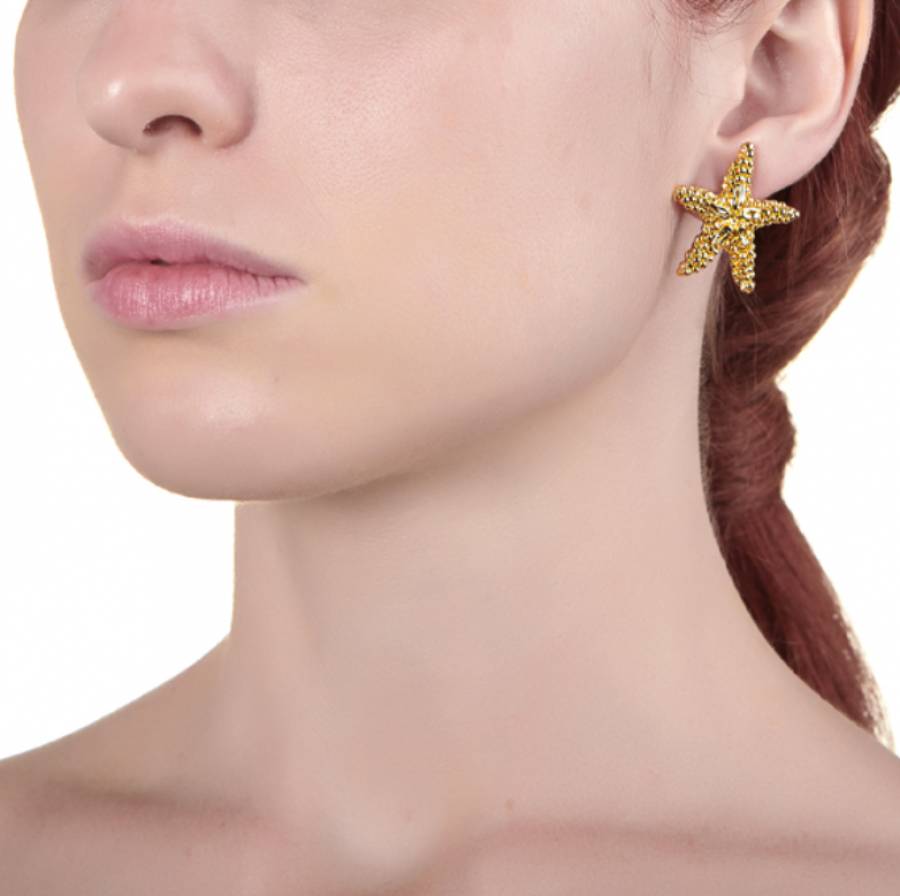Orecchini a lobo con attacco perno e farfallina, a forma di stella marina. Il diametro delle stelle è di cm. 2.8