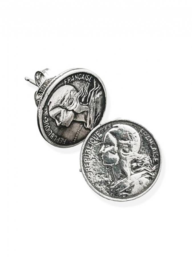 Classici orecchini minimal a forma di piccola moneta in argento 925 brunito e lucidato. Il diametro delle monetine è cm. 1.6