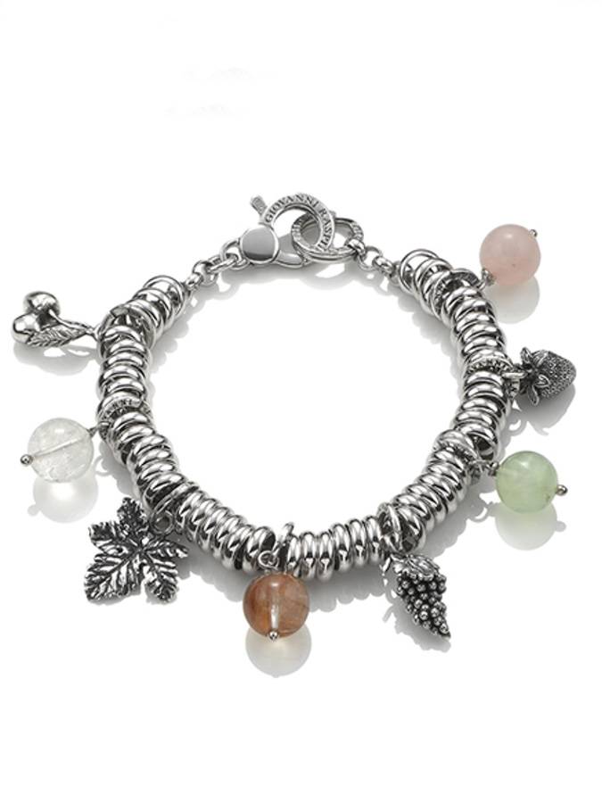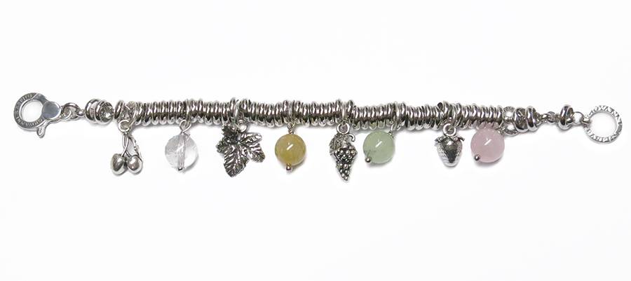 Bracciale in Argento 925 e cristallo di rocca, quarzo rutilato, prehnite, quarzo rosa della linea componibile Roulette.Lunghezza cm 20.